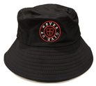 100% organic cotton black bucket hat with Never Give Up logo embroidery.