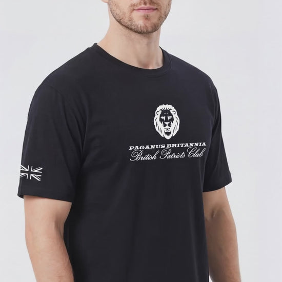British Patriots Club. Black 280 gsm organic combed cotton t-shirt.