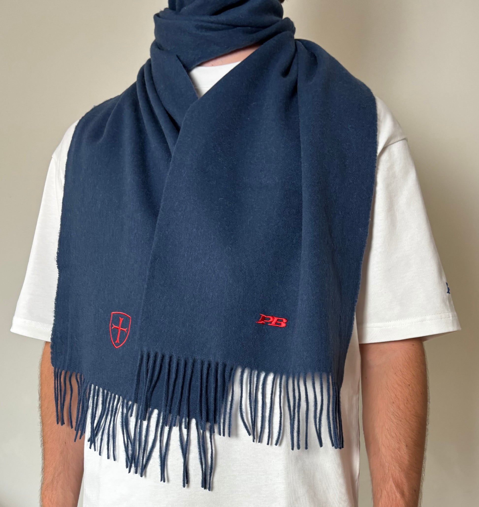 Beautiful navy blue with double Paganus logos in red. Extra wide 30cm and 200cm length. Extra soft wool & cashmere blend.
